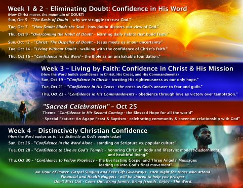 This 4-Week Series will show how Christ moves the mountains of doubt, fear, discouragement, temptation, and hopelessness by giving confidence in His Word, His Cross, and His prophetic truth.